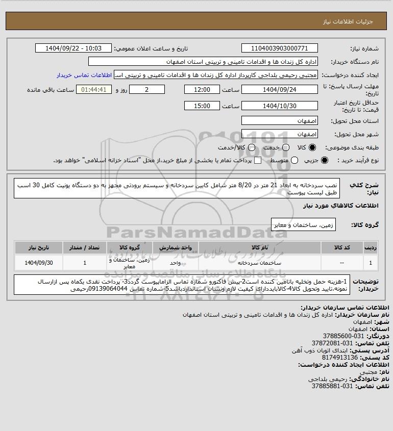 نام دستگاه خریدار:اداره کل زندان ها و اقدامات تامینی و تربیتی استان اصفهان