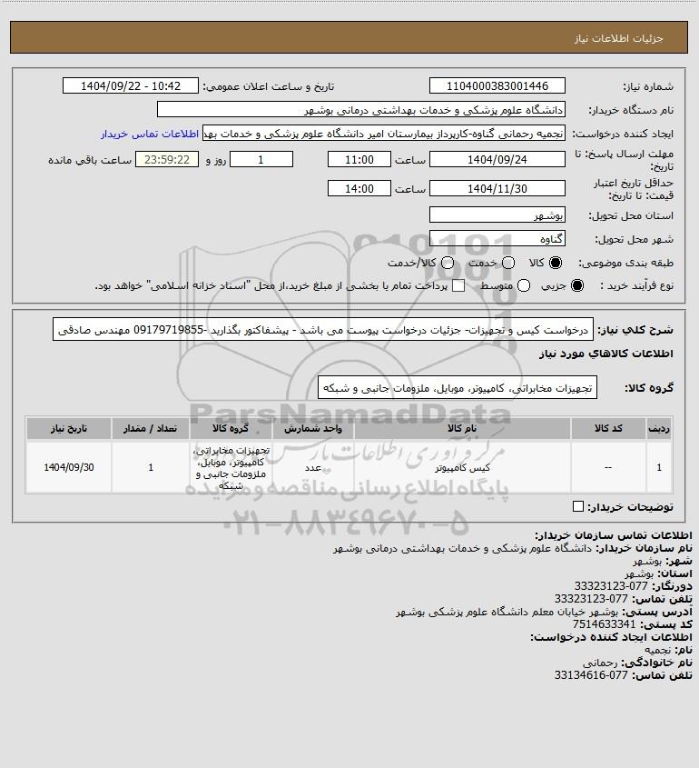 | 1 | -- | کیس کامپیوتر | عدد | تجهیزات مخابراتی، کامپیوتر، موبایل، ملزومات جانبی و شبکه | 1 | 1404/09/30 |