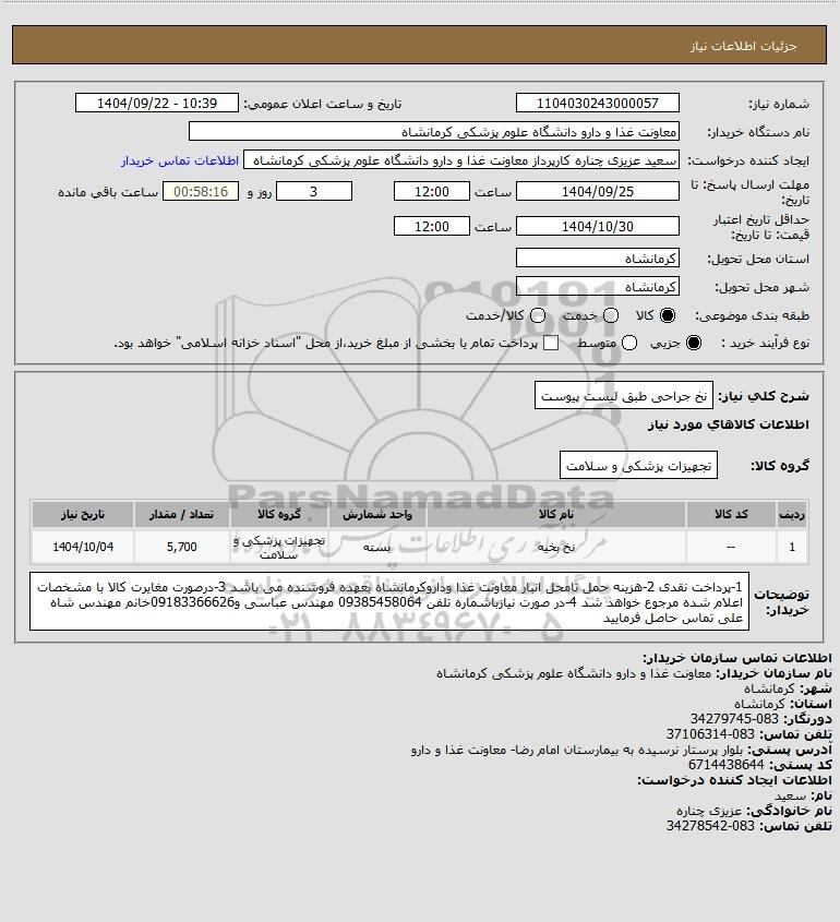 نام دستگاه خریدار:معاونت غذا و دارو دانشگاه علوم پزشکی کرمانشاه