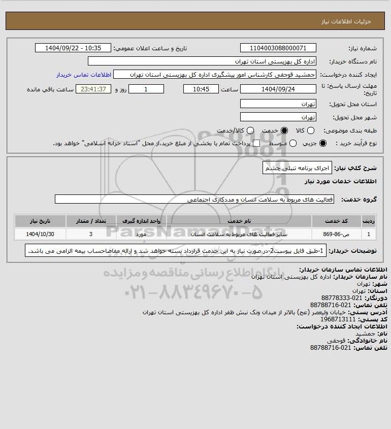 استعلام اجرای برنامه تنبلی چشم, استعلام اجرای برنامه تنبلی چشم