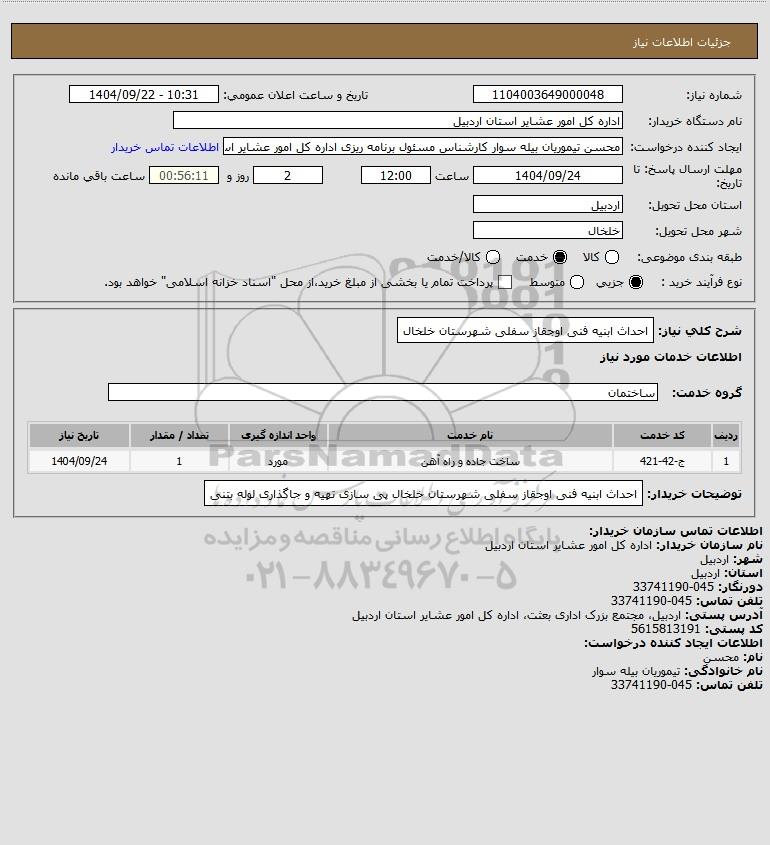 شرح کلی نیاز: احداث ابنیه فنی اوجقاز سفلی شهرستان خلخال
