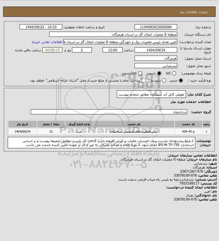 شرح کلی نیاز: تعویض کابل آند سیلیکون مطابق ضمایم پیوست