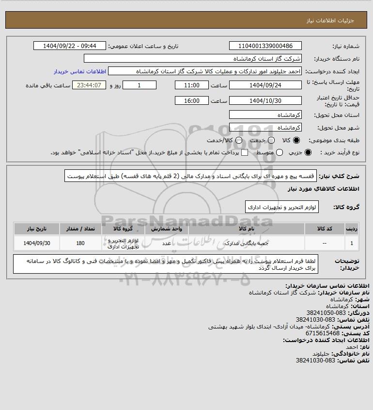 نام دستگاه خریدار:شرکت گاز استان کرمانشاه