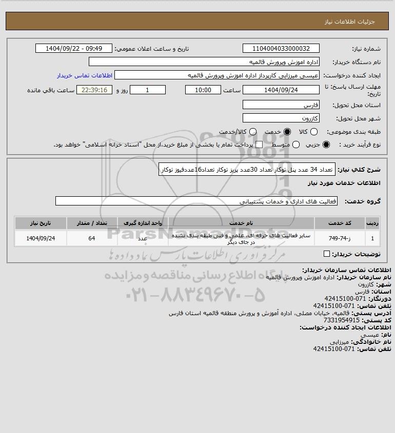 نام دستگاه خریدار:اداره اموزش وپرورش قائمیه