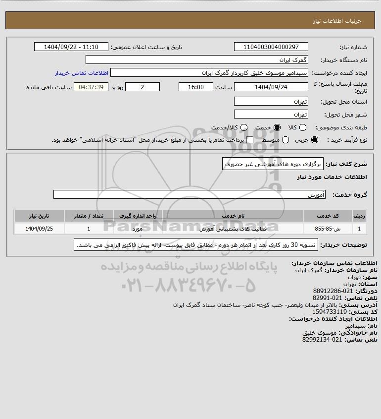 شرح کلی نیاز: برگزاری دوره های آموزشی غیر حضوری