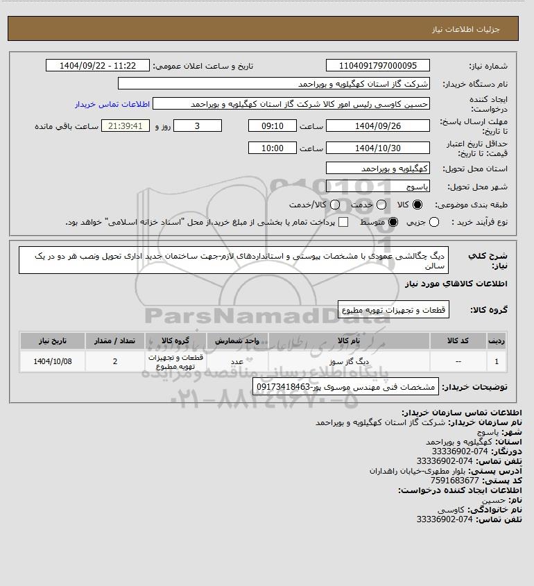 نام دستگاه خریدار:شرکت گاز استان کهگیلویه و بویراحمد