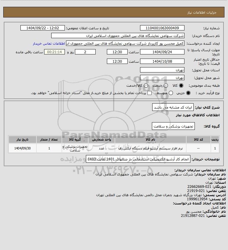 شرح کلی نیاز: ایران کد مشابه می باشد