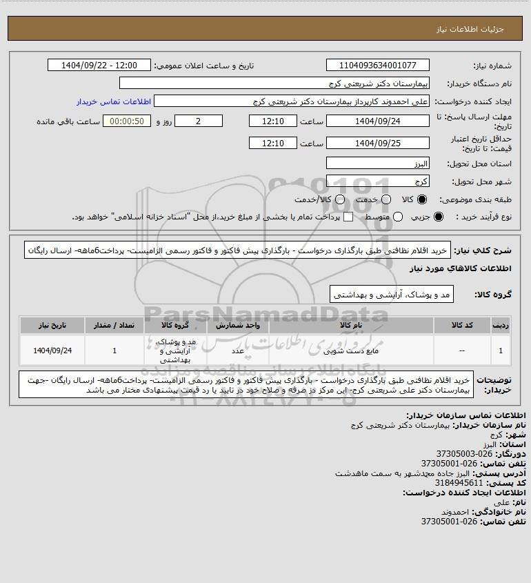 نام دستگاه خریدار:بیمارستان دکتر شریعتی کرج