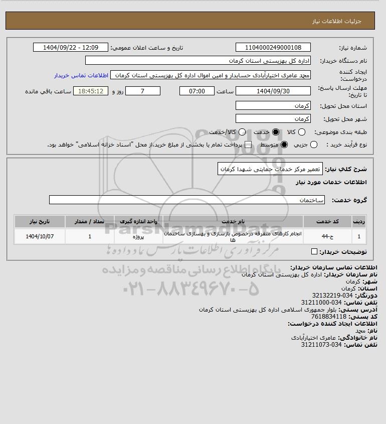 شرح کلی نیاز: تعمیر مرکز خدمات حمایتی شهدا کرمان