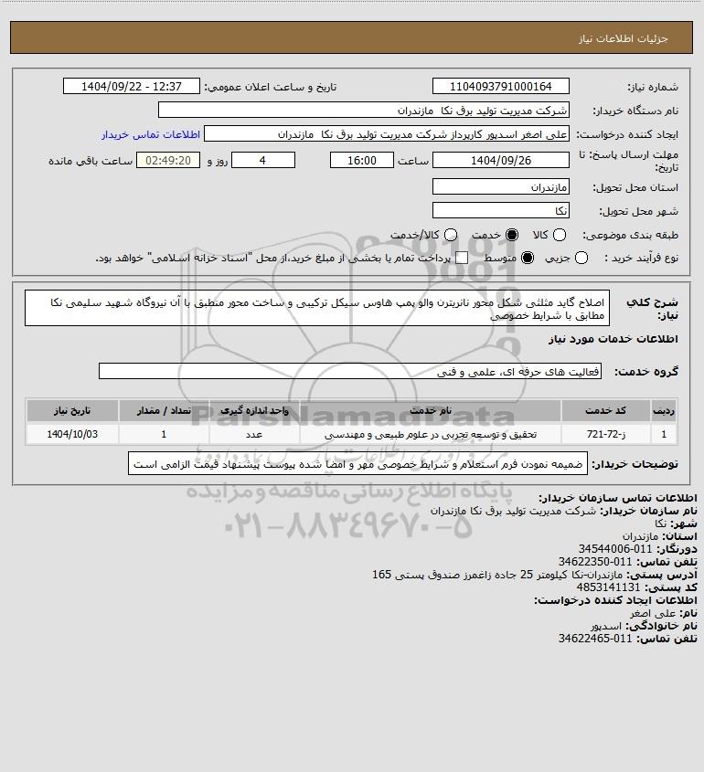 نام سازمان خریدار: شرکت مدیریت تولید برق نکا مازندران