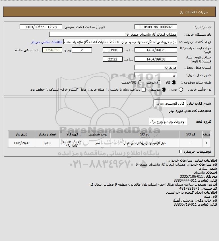 نام دستگاه خریدار:عملیات انتقال گاز مازندران منطقه 9