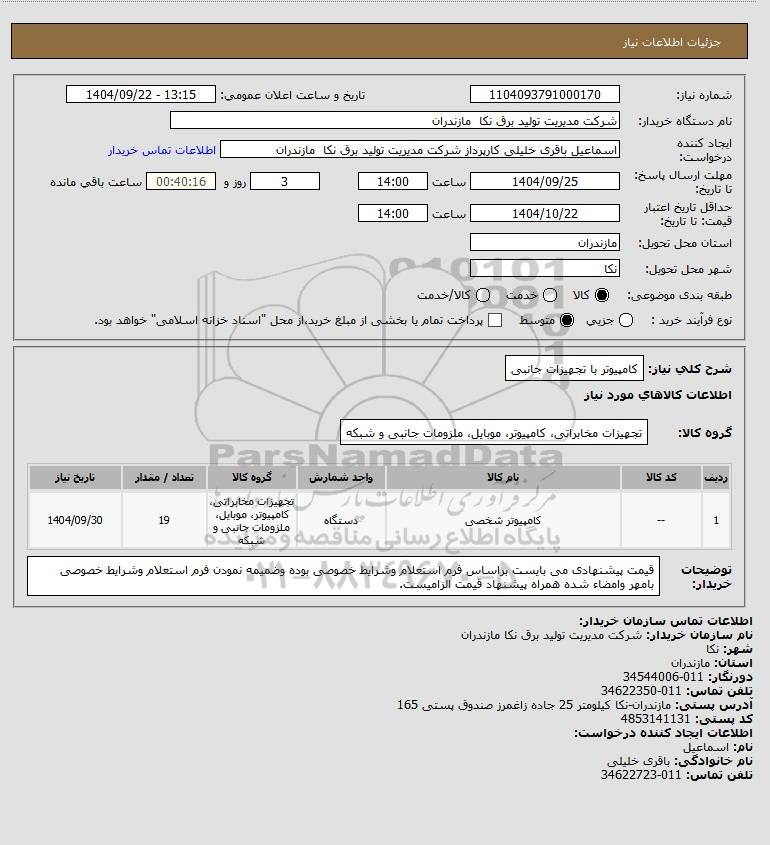 | 1 | -- | کامپیوتر شخصی | دستگاه | تجهیزات مخابراتی، کامپیوتر، موبایل، ملزومات جانبی و شبکه | 19 | 1404/09/30 |
