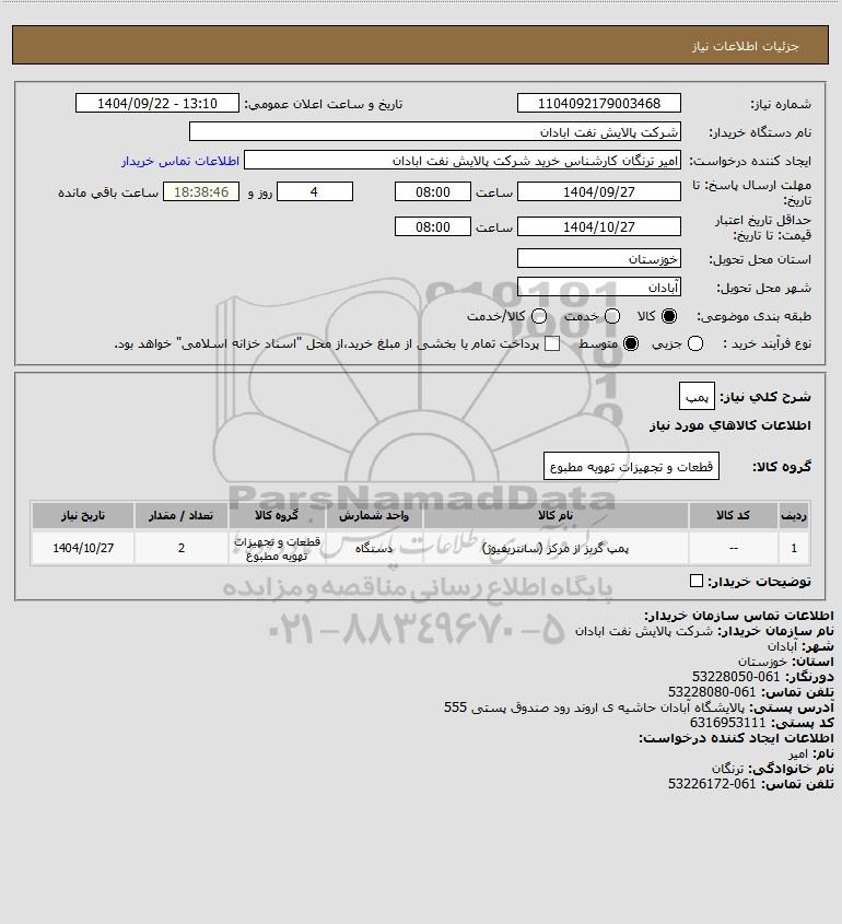 نام دستگاه خریدار:شرکت پالایش نفت ابادان