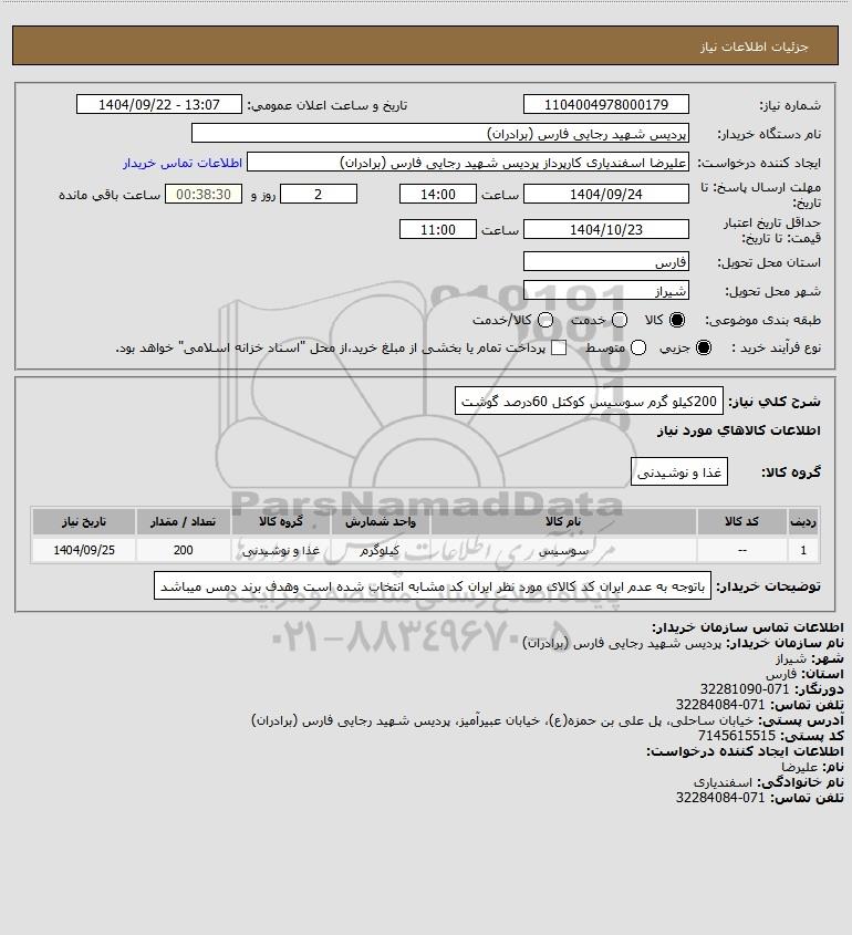| 1 | -- | سوسیس | کیلوگرم | غذا و نوشیدنی | 200 | 1404/09/25 |