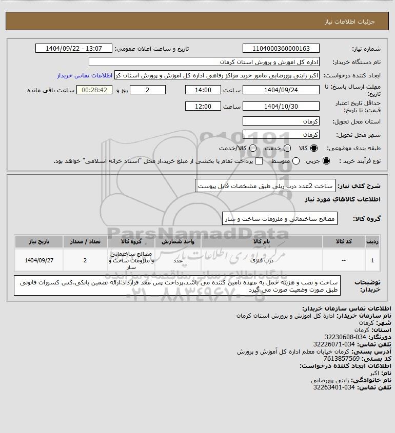 نام دستگاه خریدار:اداره کل اموزش و پرورش استان کرمان