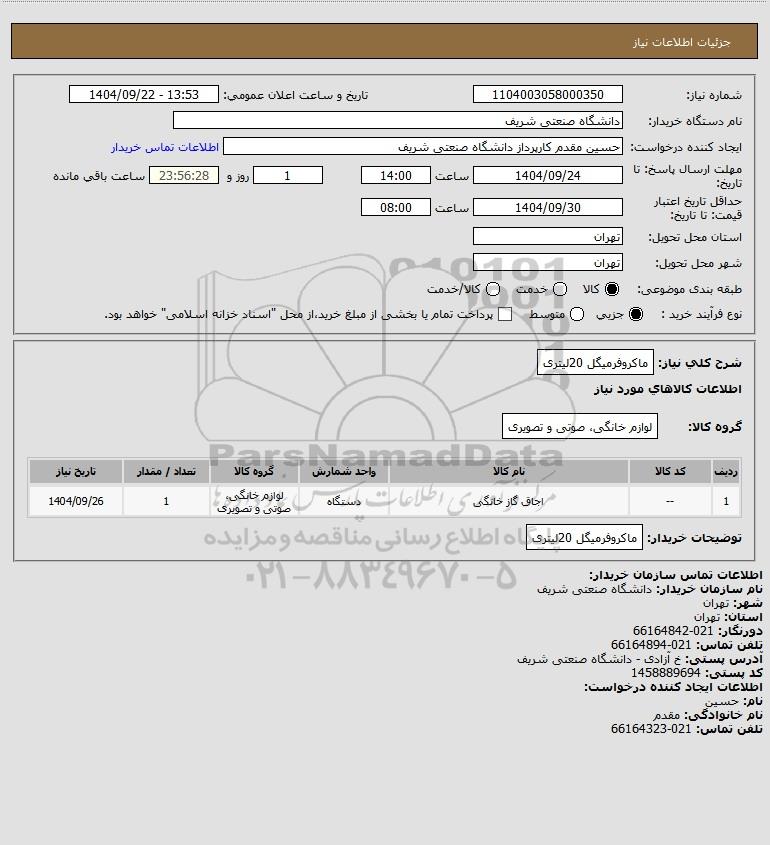 نام دستگاه خریدار:دانشگاه صنعتی شریف