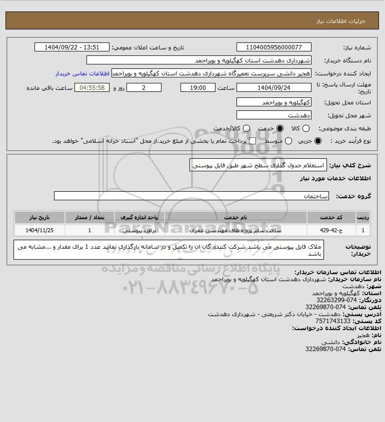 شرح کلی نیاز: استعلام جدول گذاری سطح شهر طبق فایل پیوستی