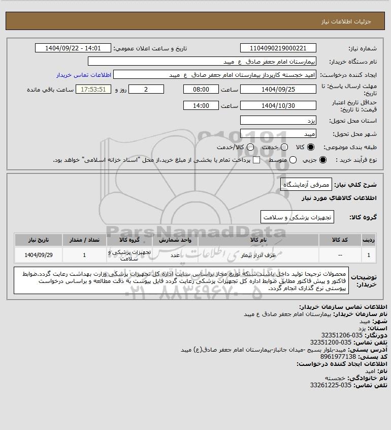 نام دستگاه خریدار:بیمارستان امام جعفر صادق ع میبد