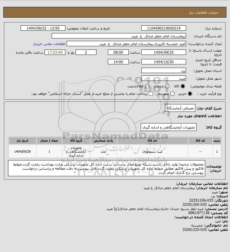 نام دستگاه خریدار:بیمارستان امام جعفر صادق ع میبد
