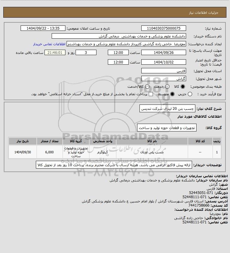 شرح کلی نیاز: چسب بتن 20 لیتری شرکت تندیس