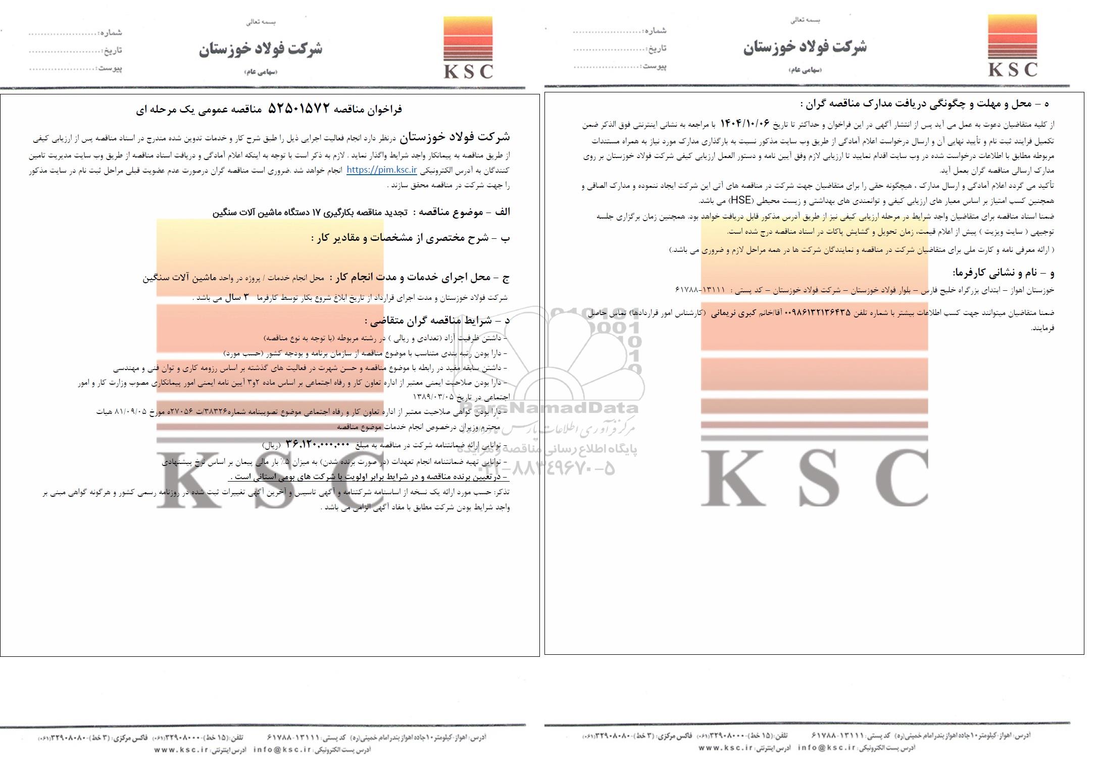 فراخوان مناقصه 52501572 عمومی دو مرحله ای