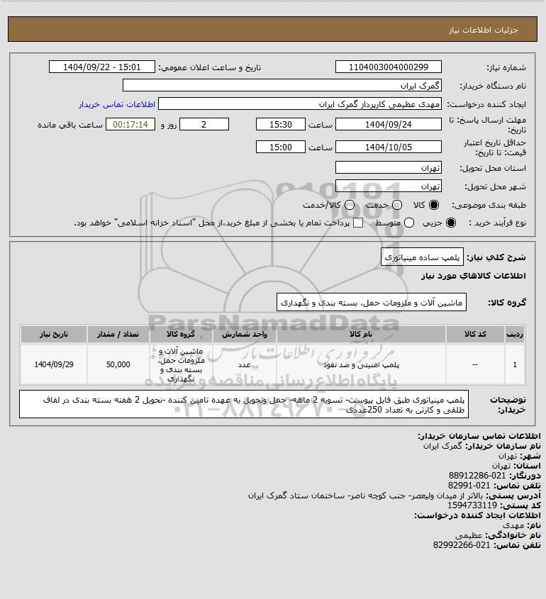 1 -- پلمپ امنیتی و ضد نفوذ عدد ماشین آلات و ملزومات حمل، بسته بندی و نگهداری 50,000 1404/09/29