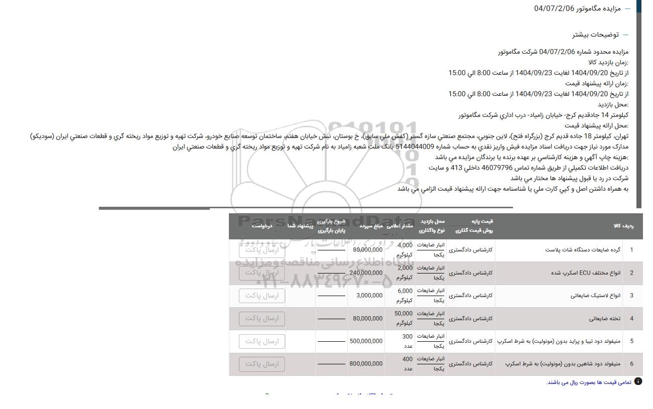 مزایده عمومی شماره 04.07.2.06 شرکت مگاموتور