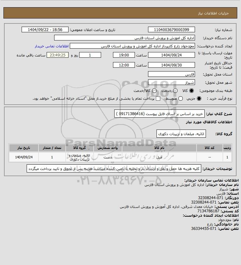 شرح کلی نیاز: خرید بر اساس بر اسای فایل پیوست (09171386416 )