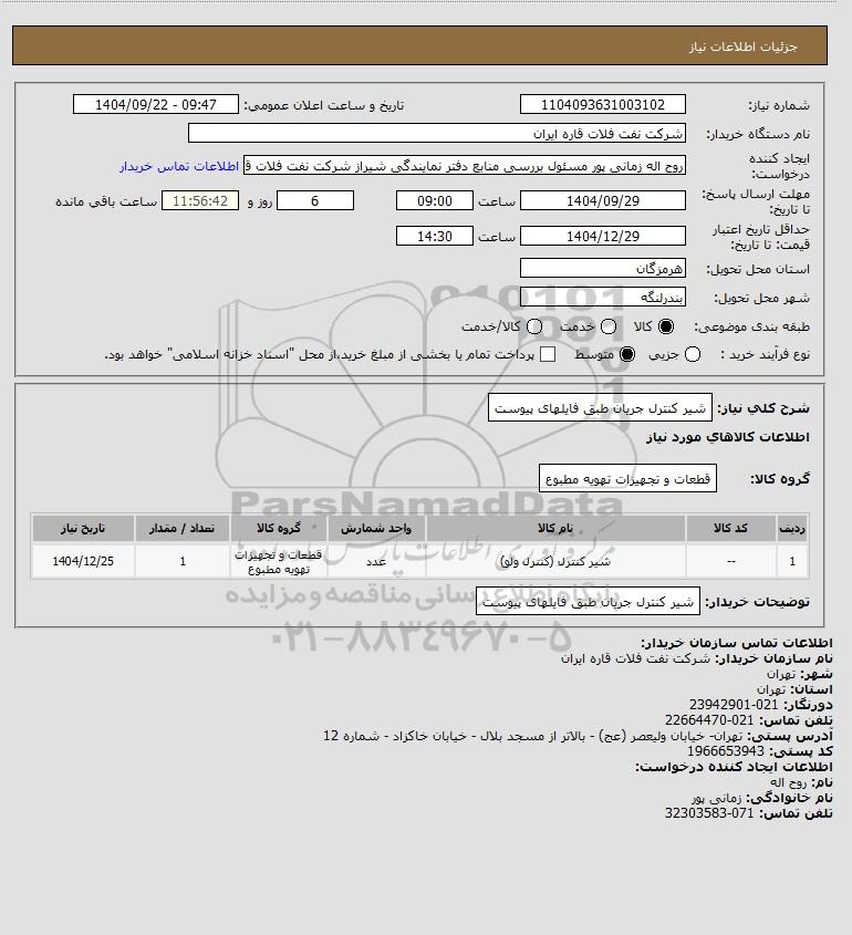 نام سازمان خریدار: شرکت نفت فلات قاره ایران
