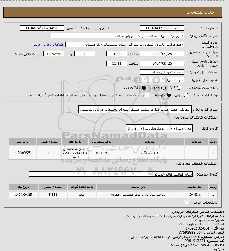 شرح کلی نیاز: پیمانکار جهت جدول گذاری سایت مسکن سوران توضیحات در فایل پیوستی