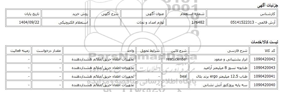 آرش قائمی - 05141522313176482لوازم امداد و نجاتاستعلام الکترونیکی1404/09/22