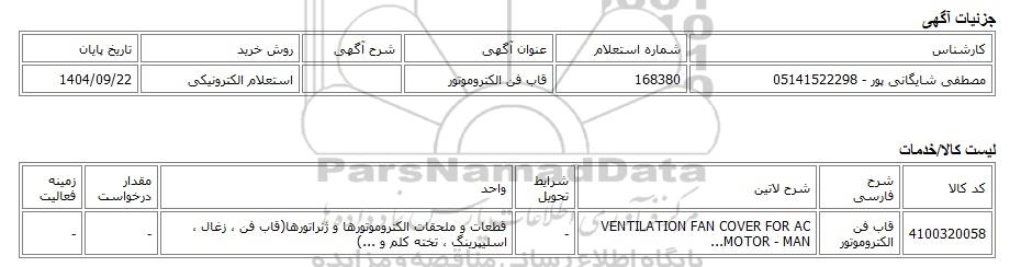 مصطفی شایگانی پور - 05141522298168380قاب فن الکتروموتوراستعلام الکترونیکی1404/09/22
