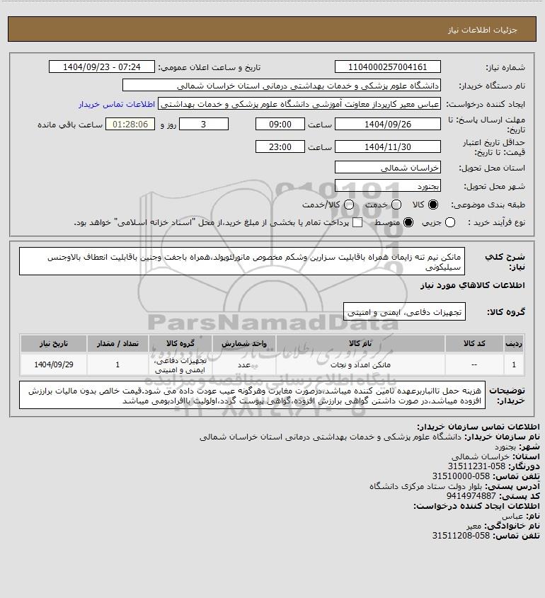 نام دستگاه خریدار:دانشگاه علوم پزشکی و خدمات بهداشتی درمانی استان خراسان شمالی