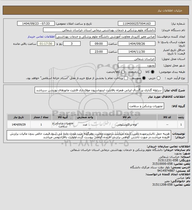 نام دستگاه خریدار:دانشگاه علوم پزشکی و خدمات بهداشتی درمانی استان خراسان شمالی