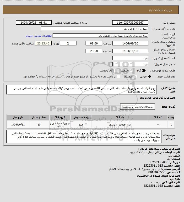 نام دستگاه خریدار:بیمارستان افشار یزد