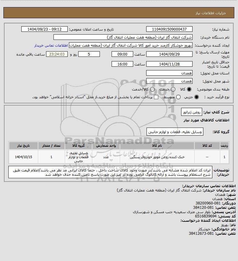 شرح کلی نیاز: روغن ژنراتور