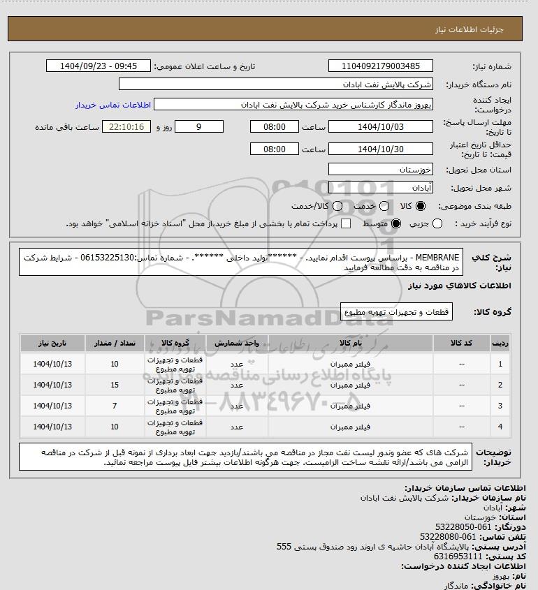 نام دستگاه خریدار:شرکت پالایش نفت ابادان