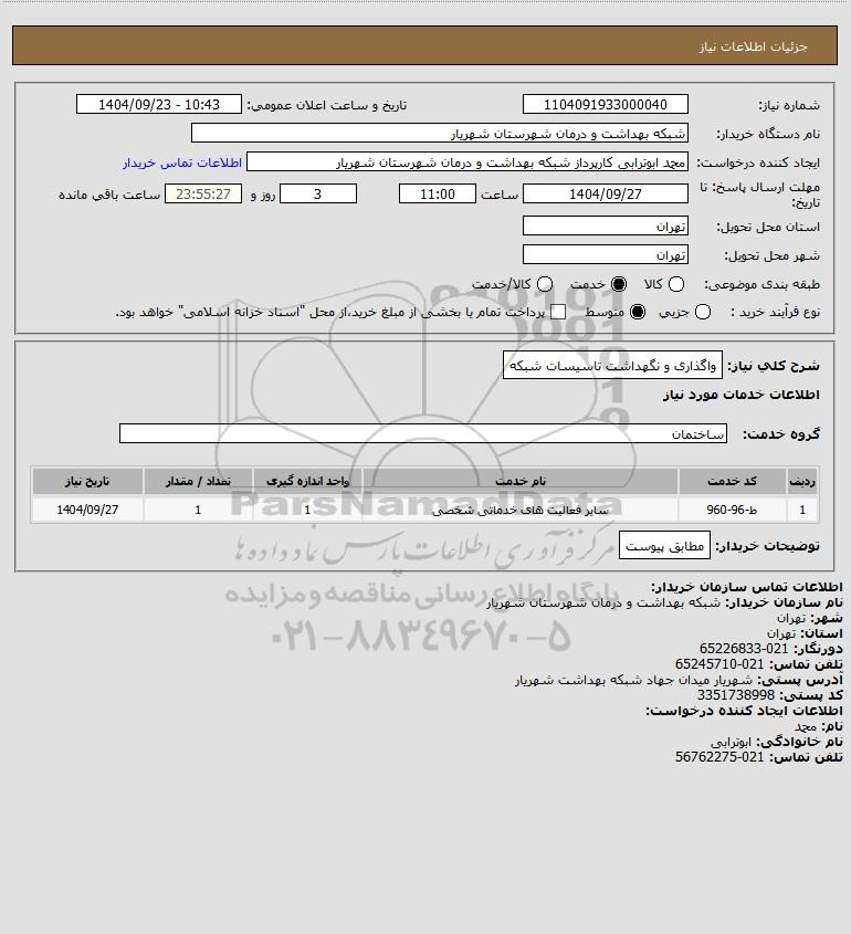 نام دستگاه خریدار:شبکه بهداشت و درمان شهرستان شهریار