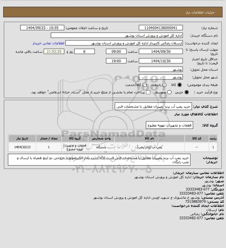 نام دستگاه خریدار:اداره کل اموزش و پرورش استان بوشهر
