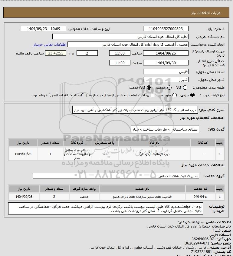 استعلام درب اسلایدینگ 2*1 متر اپراتور یونیک نصب اجرای زیر کار آهنکشی و آهن مورد نیاز, استعلام درب اسلایدینگ 2*1 متر اپراتور یونیک نصب اجرای زیر کار آهنکشی و آهن مورد نیاز