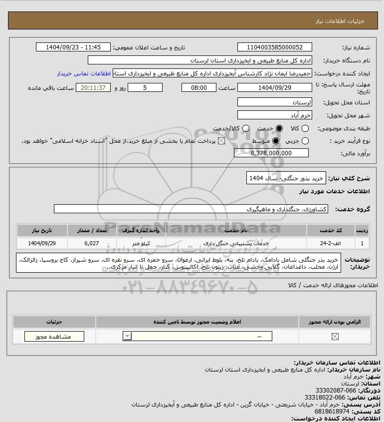شرح کلی نیاز: خرید بذور جنگلی- سال 1404