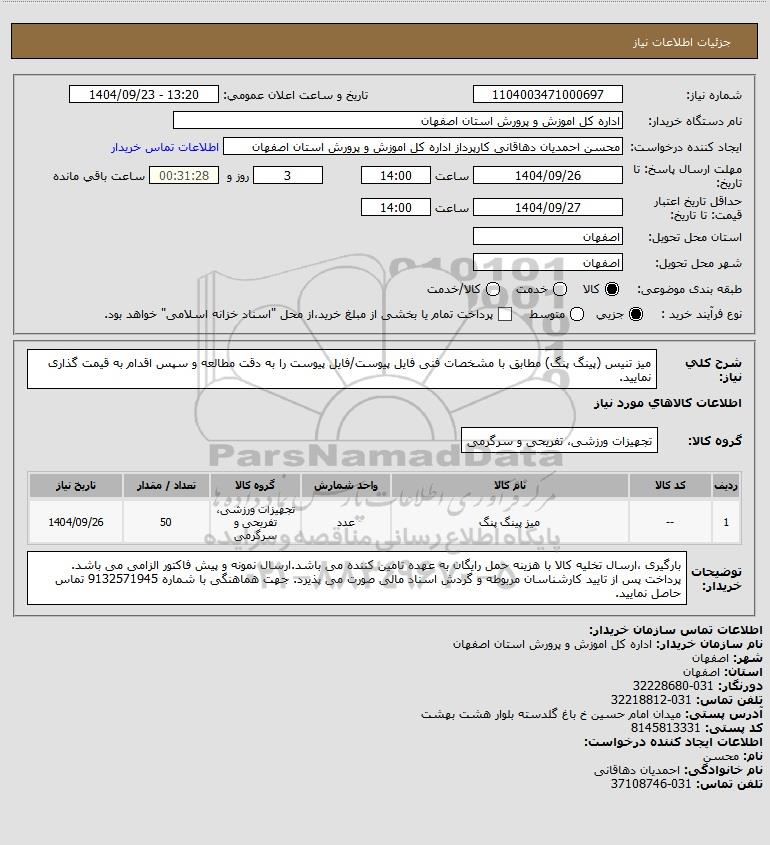 نام سازمان خریدار: اداره کل اموزش و پرورش استان اصفهان