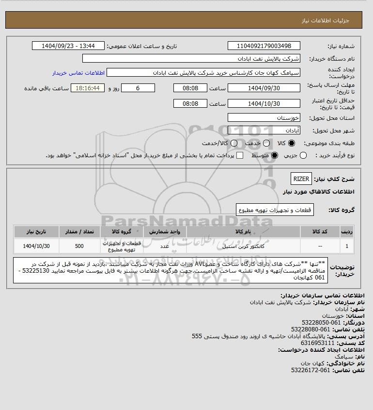 نام دستگاه خریدار:شرکت پالایش نفت ابادان