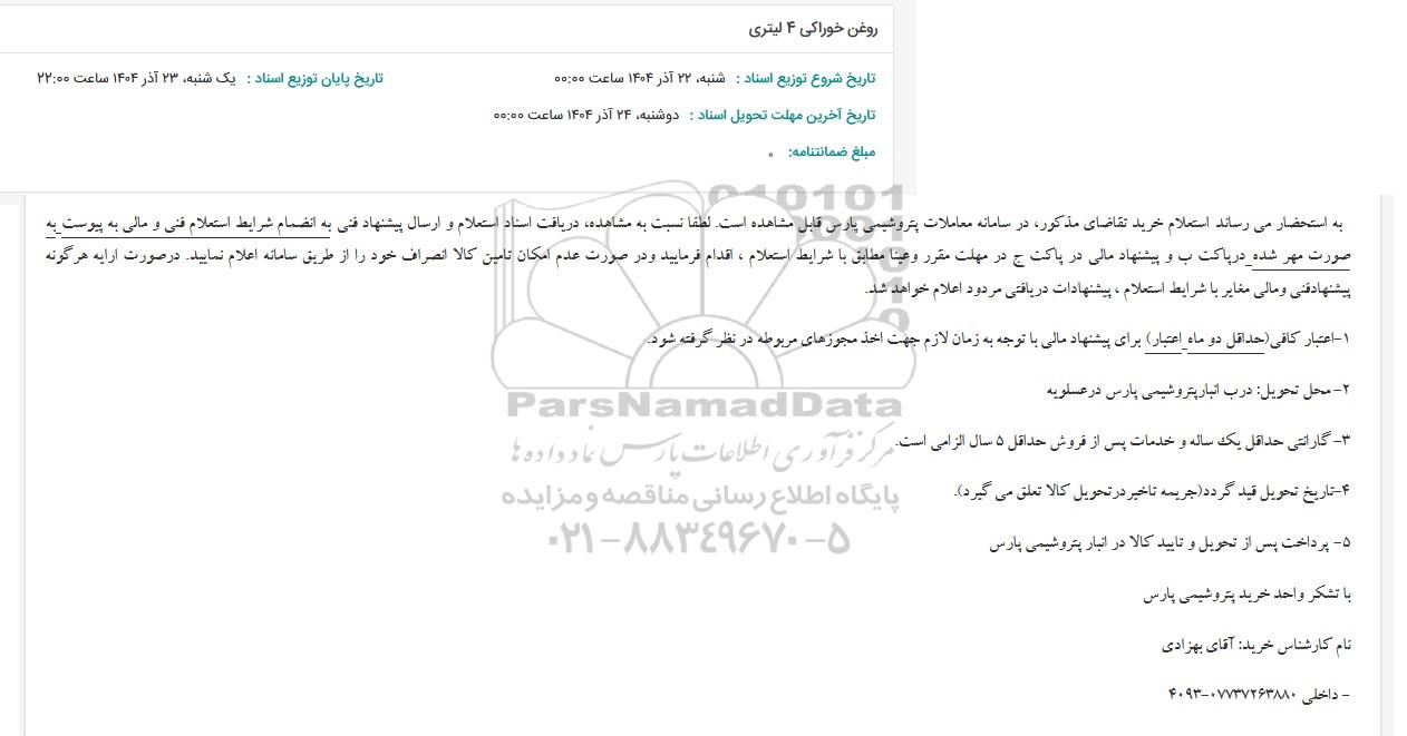 برای شرکت در مناقصه حتما از تصویر آگهی در سایت پارس نماد داده ها استفاده نمایید