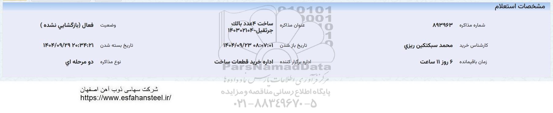 عنوان مذاکره : ساخت 4 عدد بالک جرثقیل 140302104