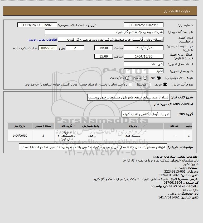 نام سازمان خریدار: شرکت بهره برداری نفت و گاز کارون