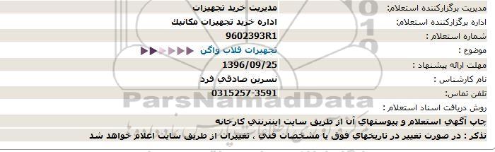 اداره برگزارکننده استعلام: اداره خرید تجهیزات مکانیک