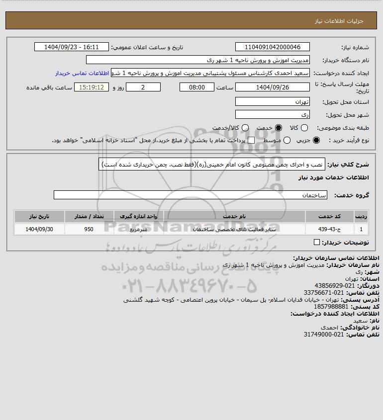 نام دستگاه خریدار:مدیریت اموزش و پرورش ناحیه 1 شهر ری