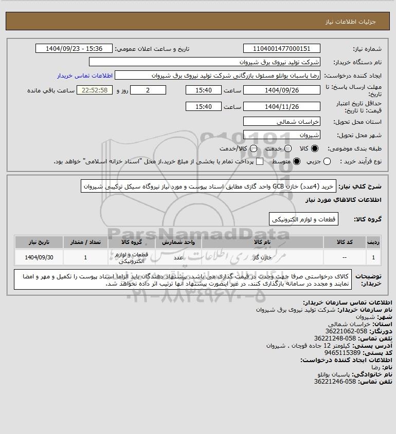 نام دستگاه خریدار:شرکت تولید نیروی برق شیروان