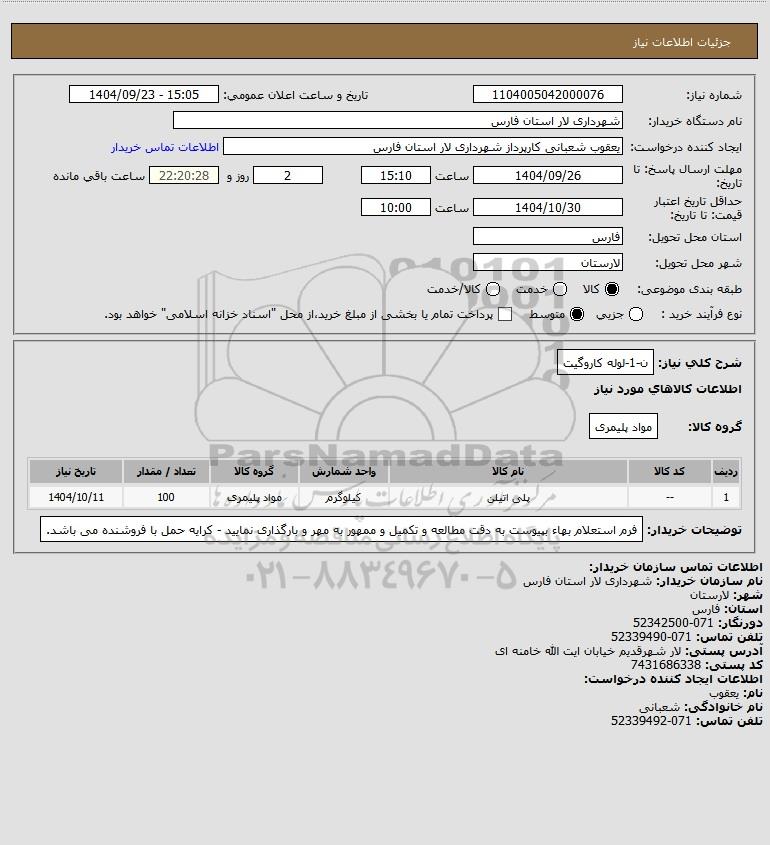 نام دستگاه خریدار:شهرداری لار استان فارس